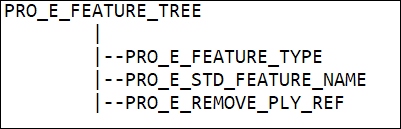 | • | PRO_E_FEATURE_TYPE—Specifies the feature type and the valid value is PRO_FEAT_REMOVE_PLY. |
